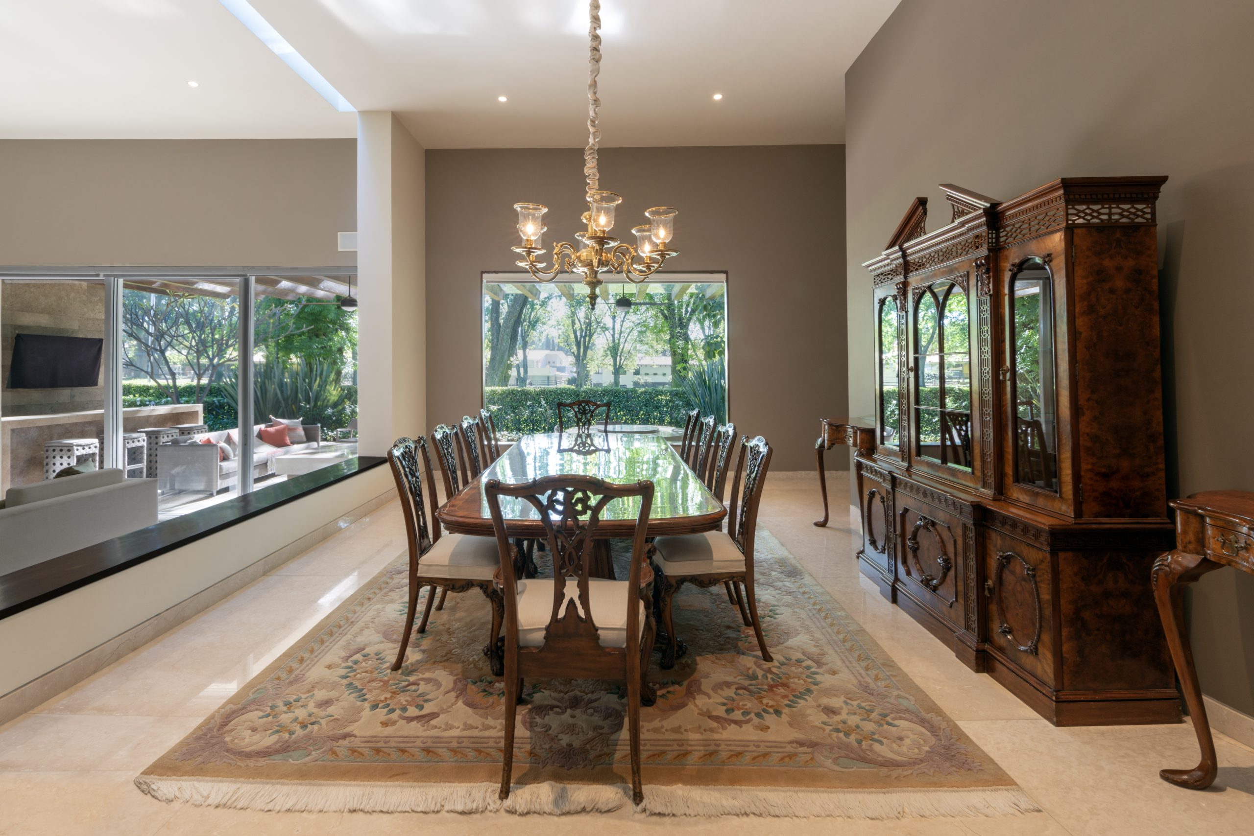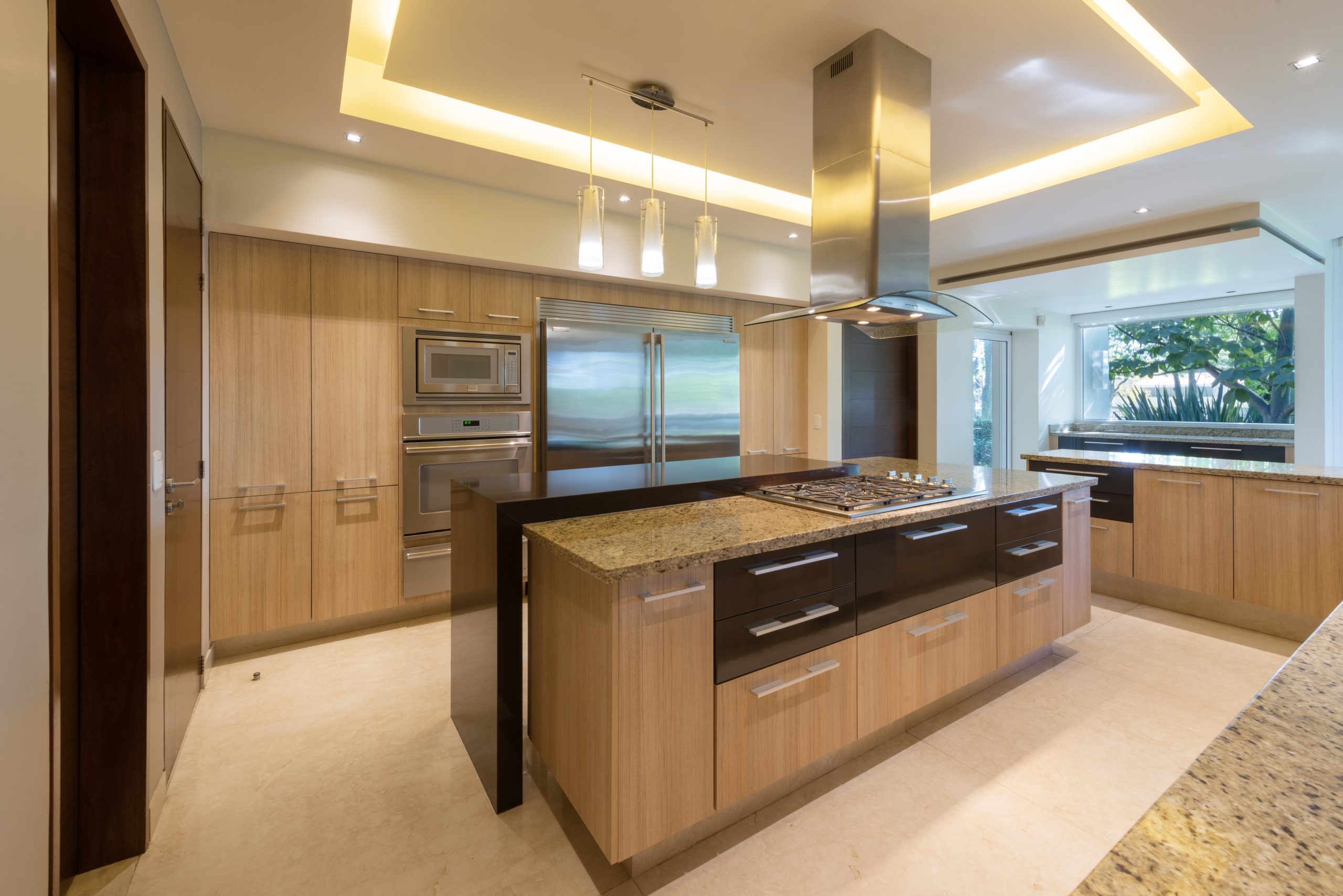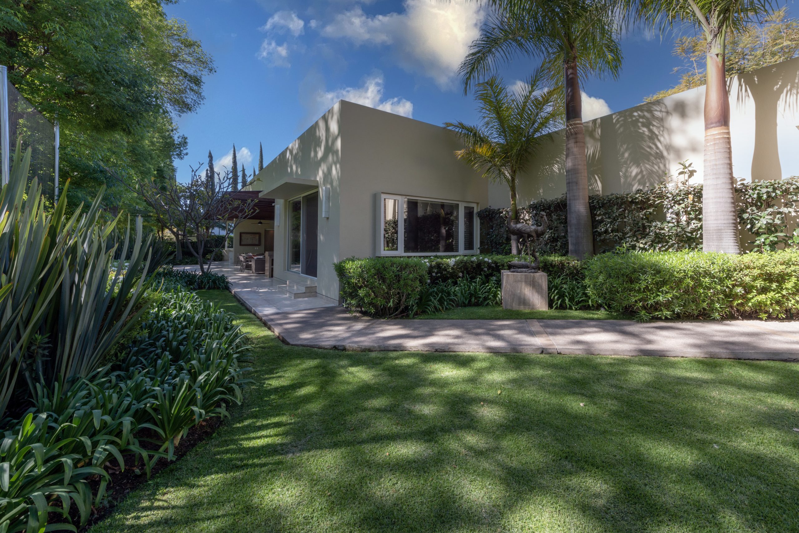 Resaltar las Características Clave, desde la fachada exterior hasta los espacios interiores, incluyendo salas, cocinas, baños y áreas de entretenimiento.
